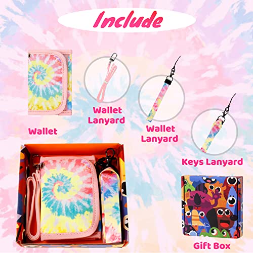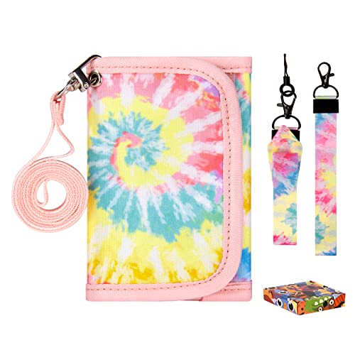 Choco Mocha Tie Dye Kids Wallets for Girls Ages 5-7 6-8 9-12, Little Girls Velcro Wallets with Lanyard Gift Box, Christmas Gift for Kids Girls, Multicolor Swirl