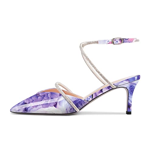 Home Shoes Pumps HEUIVZAR Women Mid Stiletto Heel Pointed Toe Pumps Slingback Buckle Diamond Crystal Wedding Dress 2.6 Inches Heels