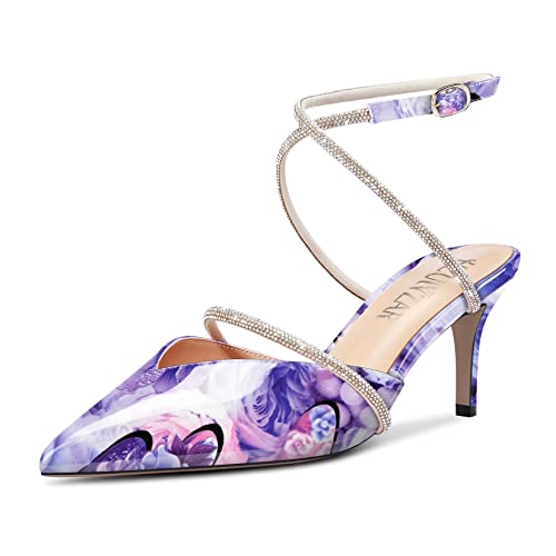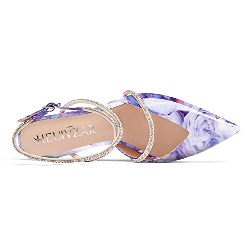 HEUIVZAR Women Mid Stiletto Heel Pointed Toe Pumps Slingback Buckle Diamond Crystal Wedding Dress 2.6 Inches Heels